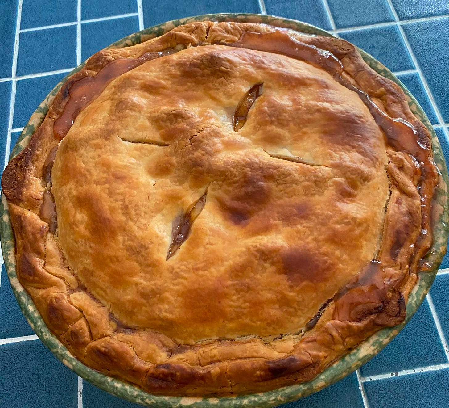 First, they made a peach pie, following up on a previous blueberry pie they had baked. While they enjoyed the result and have been eating it directly from the pie pan, they noted that peeling and slicing six cups of peaches was unexpectedly laborious.